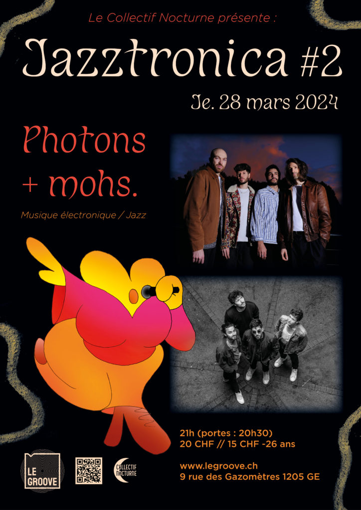 Mettre en lumière la scène émergente et futuriste qui mêle le jazz et la musique électronique. Sur une scène à 360° : l’évasion d’abord avec mohs. et son exploration des résonances cristallines dans un reg sonore ; la transe ensuite avec la techno expérimentale, instrumentale et hybride de Photons, le nouveau projet du pianiste Gauthier Toux. 🎺 🥁
